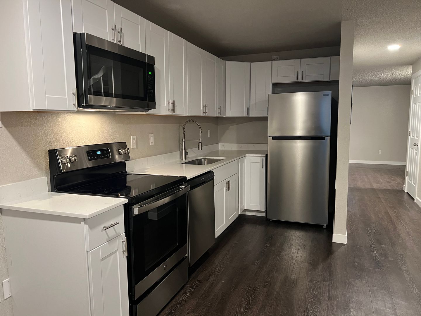Welcome to your new home in Puyallup, WA! This 2-bedroom, 2-bath, two-story townhome features luxury vinyl plank flooring, stainless steel appliances, a dining nook, and a primary bedroom with a walk-in closet. A stacked washer and dryer and two parking spaces are included. Enjoy a private patio and a convenient location near restaurants, schools, grocery stores, the Riverwalk Trail, and easy access to Hwy 512 and Hwy 167.