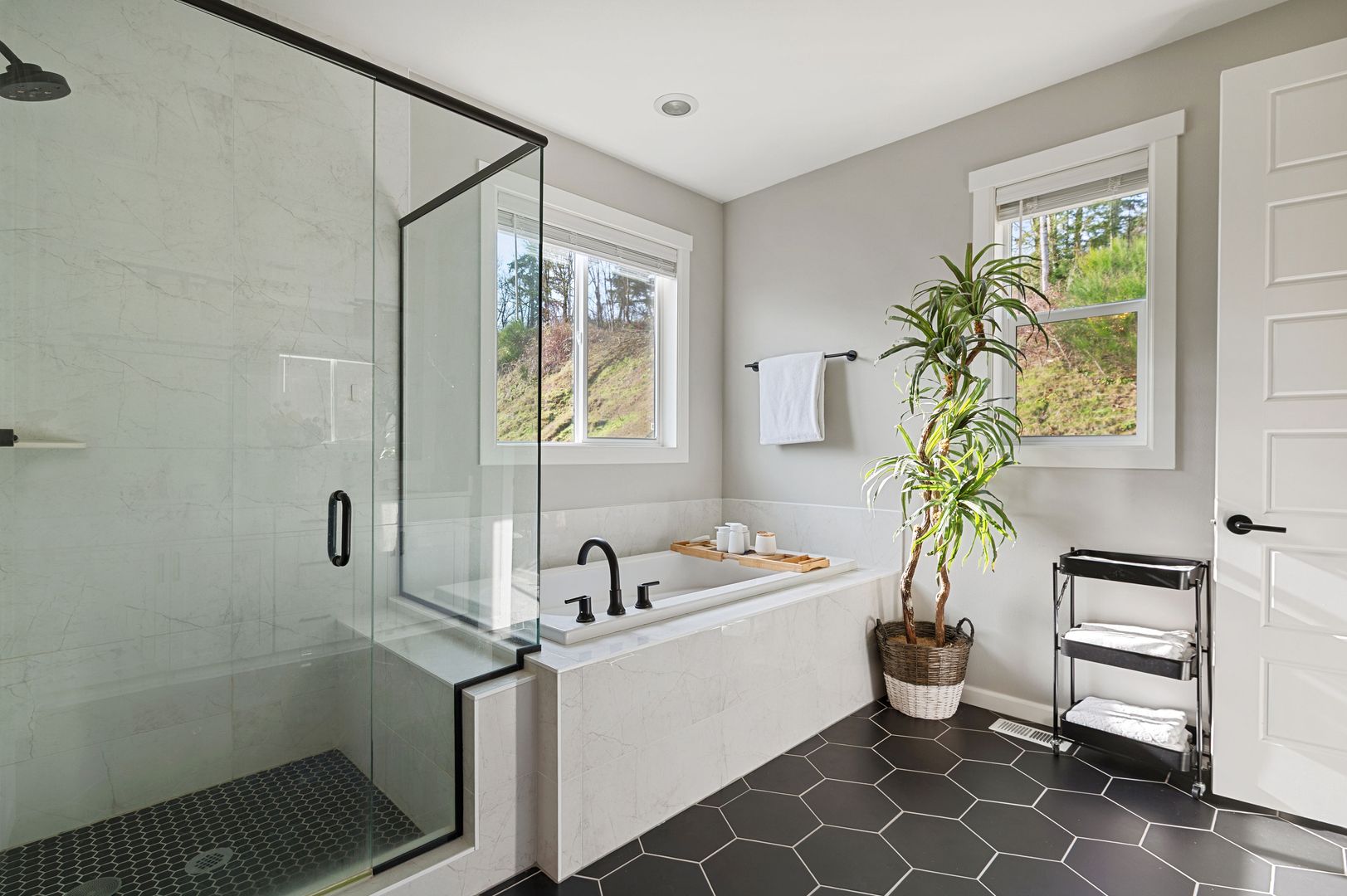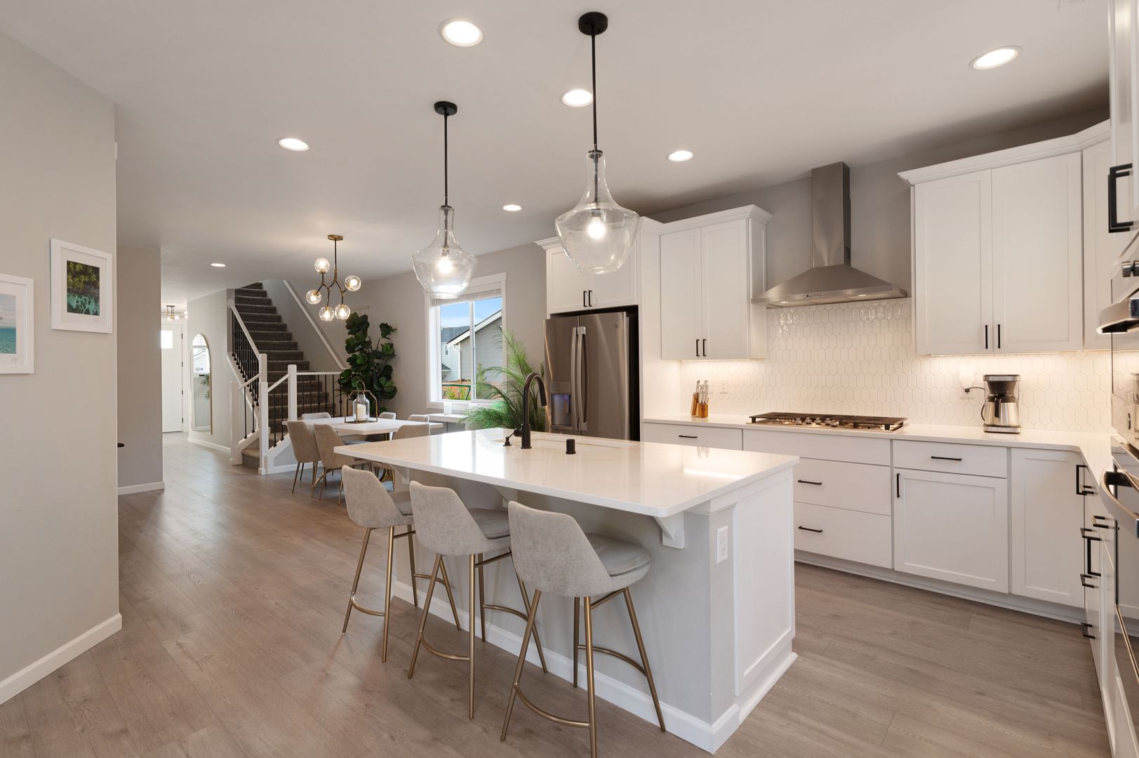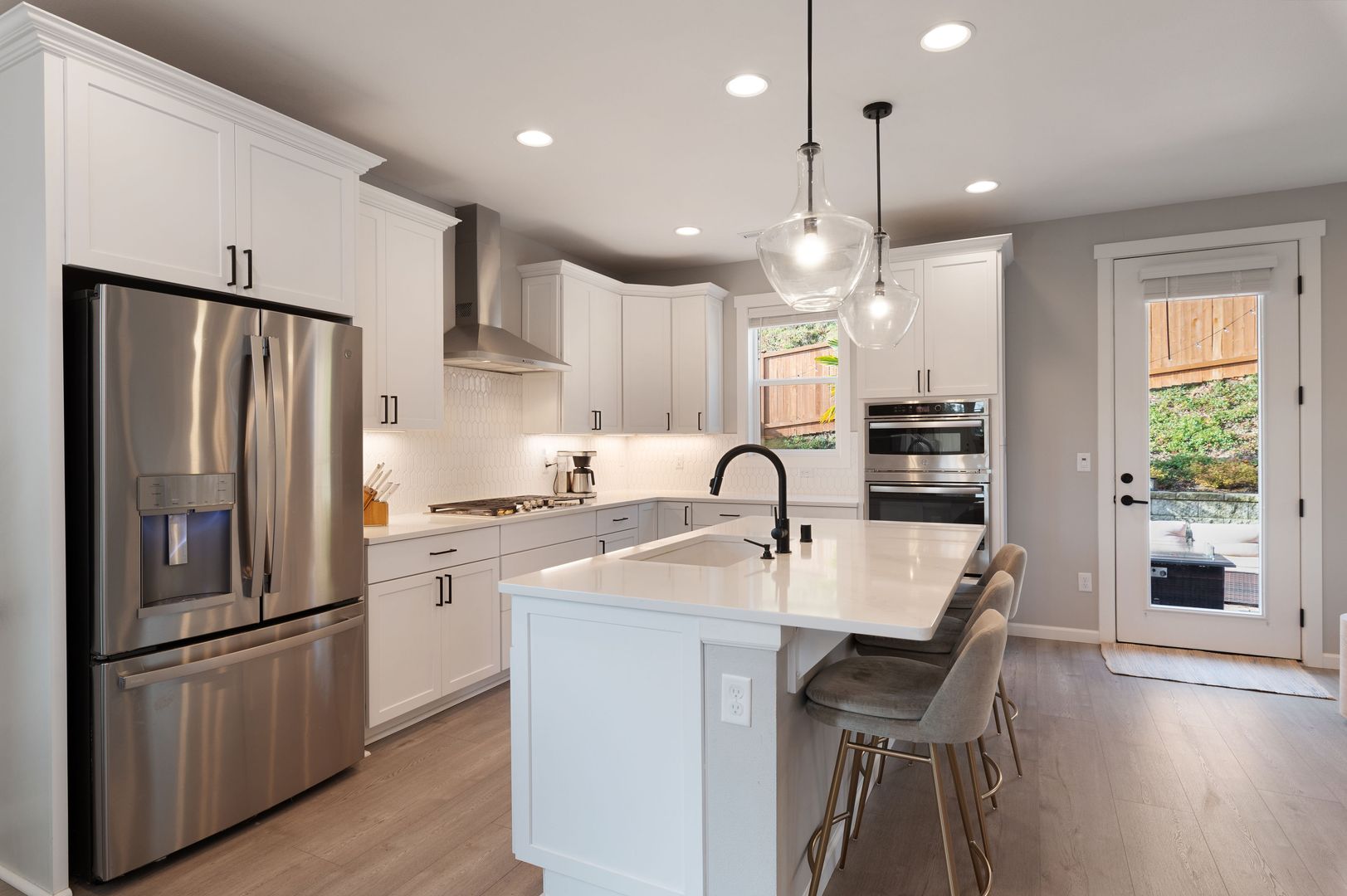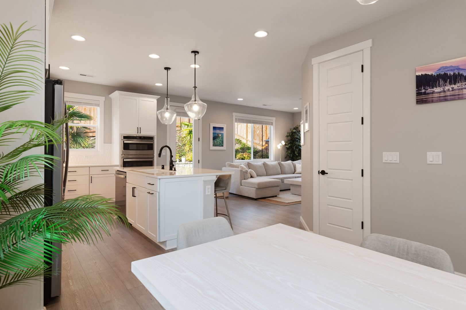 Newly remodeled 4-bed, 2.5-bath home in Gig Harbor! This freshly updated home features quartz countertops, a large kitchen island, stainless steel appliances, and LED light fixtures throughout. High 9-ft ceilings and two separate living room spaces provide flexible living areas, while the primary suite offers a 5-piece en suite and walk-in closet. Additional highlights include a dedicated laundry room with a full-size washer and dryer, a contemporary fireplace, an attached 2-car garage with driveway parking, and a large fully fenced backyard patio that backs up to a greenbelt for added privacy. Landscaping services is included in the rent, and an Arlo video doorbell is provided for added security. Located within walking distance to the Cushman Trail with easy access to Austin Park, Hwy 16, and nearby shopping at Target and Costco.