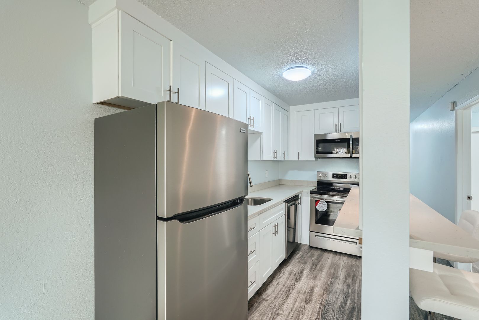 This ground-floor corner one-bedroom, one-bath apartment in Seattle offers a modernized kitchen with stainless steel appliances and durable luxury vinyl plank flooring throughout. Enjoy your own private patio, plus the convenience of on-site coin-operated laundry. The building features secure entry for added peace of mind, and optional storage is available for $25 per month. Ideally situated near multiple public transit options, the home is just a short drive—approximately 5 minutes—to Westwood Village, with a variety of dining, shopping, and entertainment, including Southgate Roller Rink, nearby.